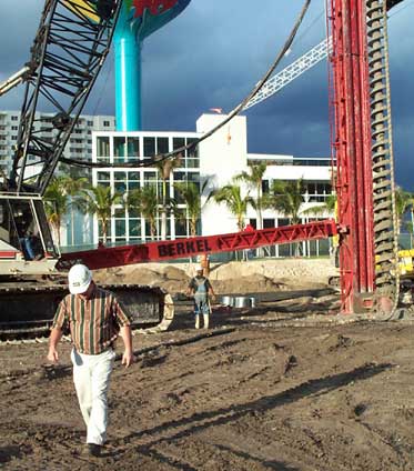 The new rig has a torque capacity of 90,000-ft-lbs and 55 R.P.M. top speed. The 110 foot rig was able to drill a 24 inch diameter pile in varying quality of rocks to a depth of 94 feet in a much shorter drilling time than previous rigs.