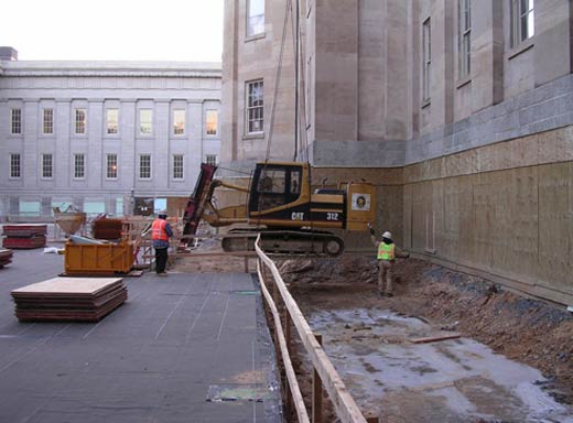 This was done as the adjacent lot was being excavated for construction of a new Energy Center for the hospital. The Project Focus of this web site tells the full story.